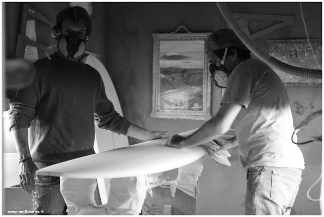 Le week end dernier, le landais Rémi Derepas était de passage à l'atelier pour deux jours de shape avec David, histoire d'apprendre à manipuler un peu les outils et d'en savoir un peu plus sur la naissance de ses deux prochains bébés (5'8 et 5'9)... Privilège réservé aux team riders car cela prend beaucoup beaucoup de temps... désolé pour ceux qui se sont dit, là, tout d'un coup "et moi et moi...?".