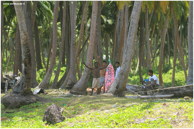 Nous retrouvons Muthu, quelques jours plus tard, à Cemetery point. La plage, superbe, est bordée de cocotiers (les premiers que nous voyons) plantés par les villageois qui viennent des îles Nicobar voisines.